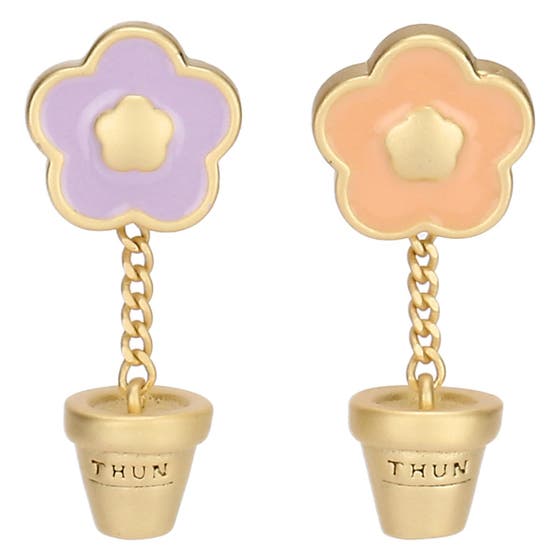 Vase pendant earrings with enamelled flower