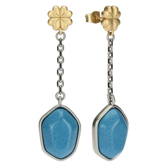 Dangle earrings with four-leaf clover and stone