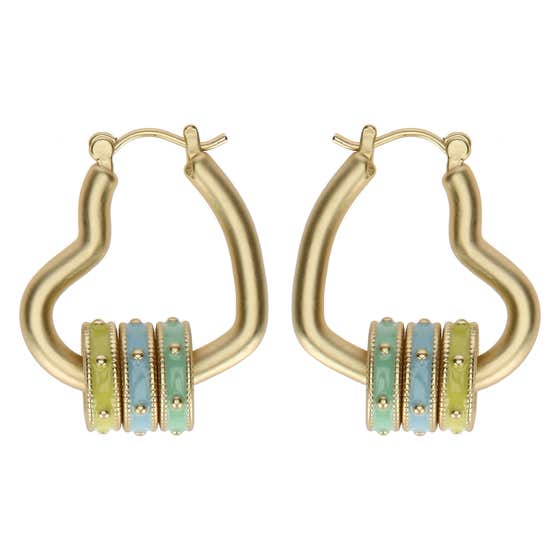 Heart earrings with enamelled rings