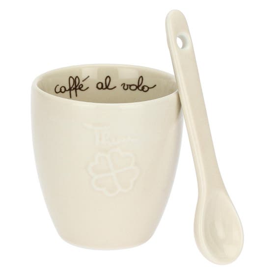 Porcelain daisy coffee cup with spoon
