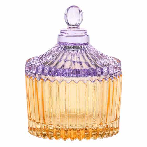 Small glaß container, orange and purple