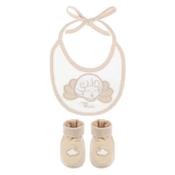 Neutral cotton bib and booties set