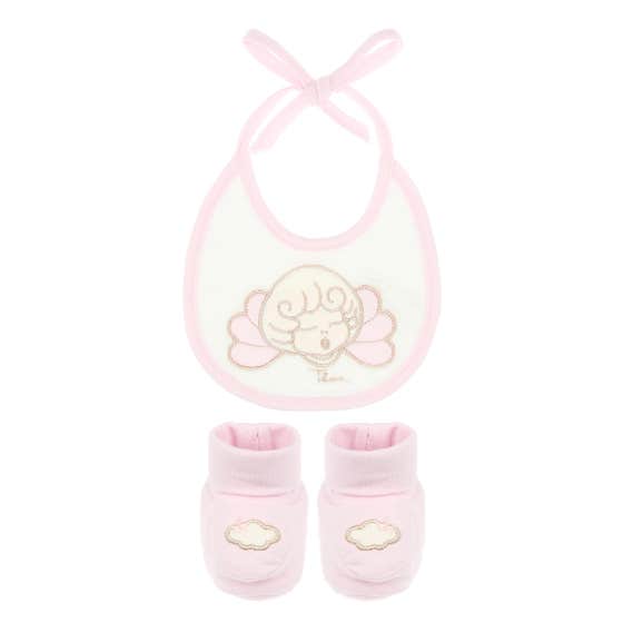 Girls cotton bib and booties set
