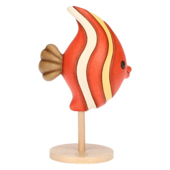 Red and yellow ceramic fish on pedestal, medium