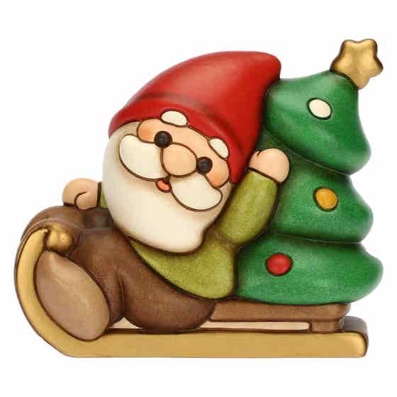 Ceramic Oliver Gnome on sledge with tree