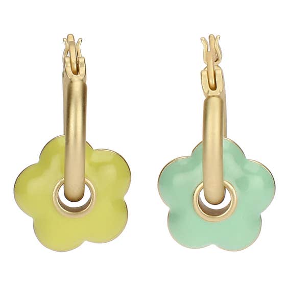 Round earrings with enamelled flower