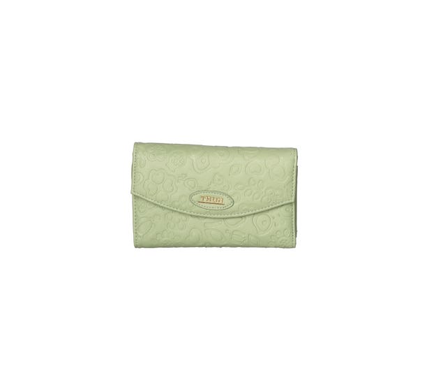 Sempre con me aqua green faux leather wallet with button closure