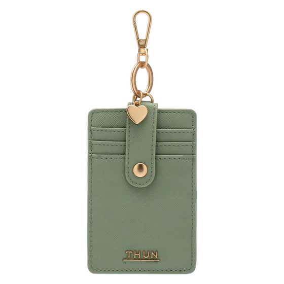 Card holder with hook in eco-leather, green